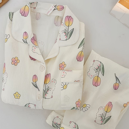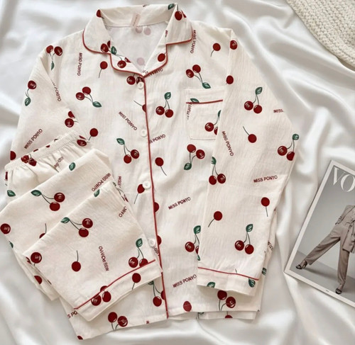 ست دو تکه نخی موسلین زنانه با طرح فانتزی | فری سایز