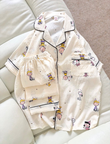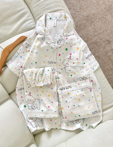ست دو تیکه استین کوتاه نخی موسلین زنانه با طرح فانتزی | فری سایز