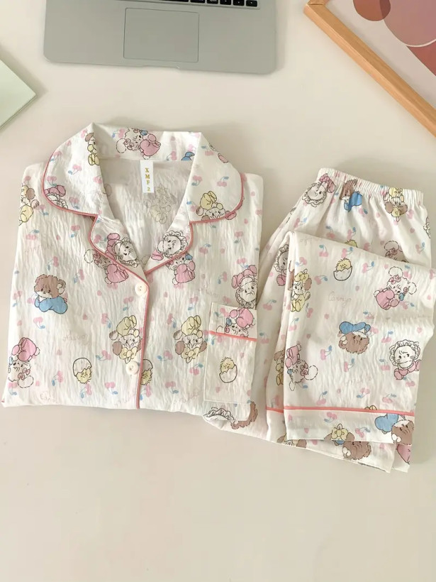 ست دو تکه لباس Leisure wear شامل بلوز آستین بلند و شلوار کمر کشی و شلوارک بوده، این ست گزینه مناسبی به عنوان لباس راحتی و خواب است.