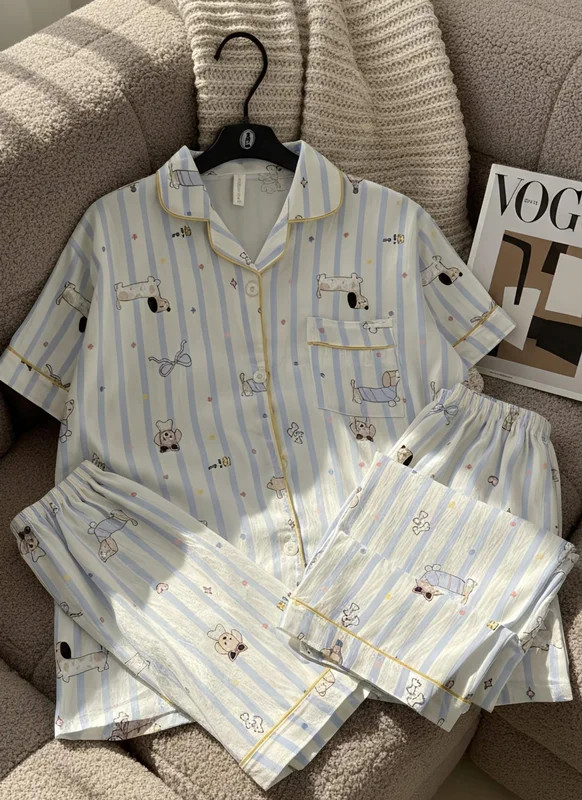 ست سه تکه نخی موسلین زنانه باطرح سگ راه راه /فری سایز